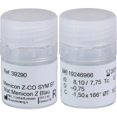 Gläschen mit 1 harten (formstabilen) bi-torisch kompensierten konventionellen Jahreslinse zur Akkommodationsentlastung mit extrem hoher Spontanverträglichkeit für verbesserten Tragekomfort. Für Patienten mit Hornhautverkrümmung (Astigmatismus).